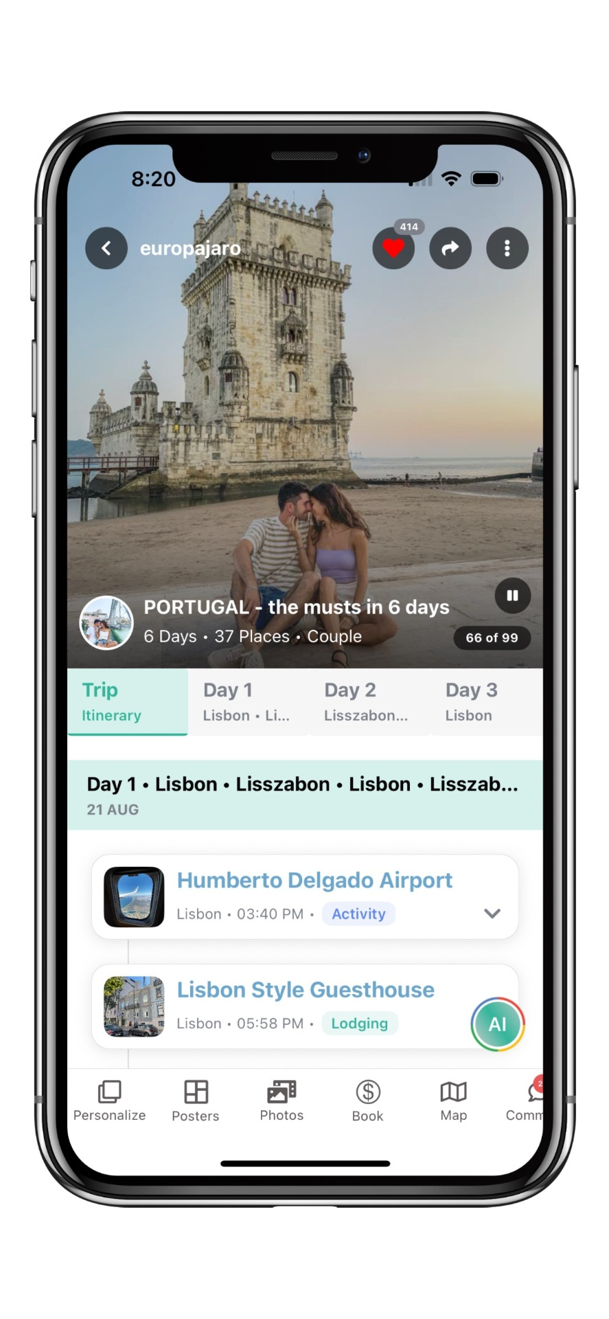 AI-powered super app where travelers discover, plan, book and post epic trips!
